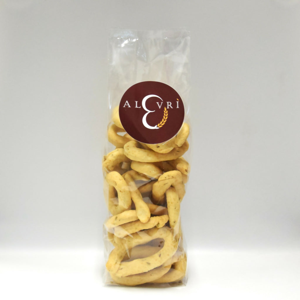 Farina di GRANO tenero 0,vino bianco (contiene SOLFITI),olio extravergine d’oliva,olio di girasole alto oleico,semi di finocchio 1,7% sale,zucchero di canna,bicarbonato di sodio. Può contenere tracce di SOIA,SENAPE e LUPINI.