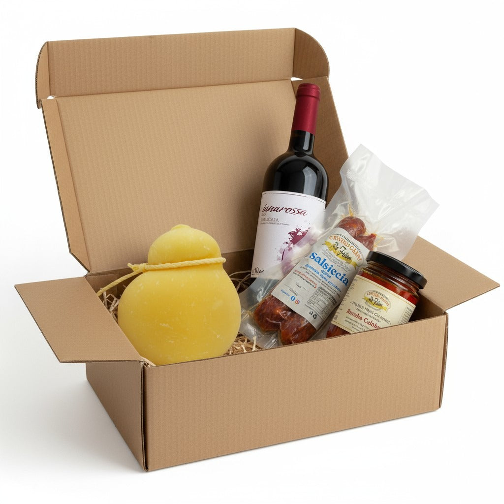 Vivi un Natale autentico e genuino con la Box Natalizia del Pastore, una selezione curata di eccellenze gastronomiche campane. Questi cesti natalizi racchiudono il meglio della tradizione pastorale: un Caciocavallo DOP da 1,5 kg, simbolo della casearia meridionale, abbinato al pregiato Vino Aglianico "Lunarossa" della Cattedrale, che esalta i sapori robusti e territoriali. Completano l'offerta una Salsiccia Dolce artigianale di Centro Carni De Felice, i Peperoni Cruschi di I Trasformati, ingredienti nobili della cucina locale. Ogni prodotto è realizzato senza conservanti, garantendo autenticità e qualità. La confezione natalizia in legno, arricchita da paglia naturale e accompagnata da un biglietto di auguri personalizzato, rende questo box un regalo straordinario per chi apprezza le radici gastronomiche e la genuinità artigianale.